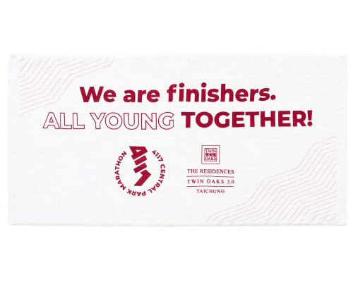 「我跑團有 10 幾個人,我們去年找泓棨訂了一批客製化毛巾,印上我們的團名和一句『跑下去,人生無極限!』的標語。每次比賽拿出來用,真的超有團魂!而且這毛巾真的很讚,吸汗快又好洗,跑完丟洗衣機,隔天又是一條好漢!」